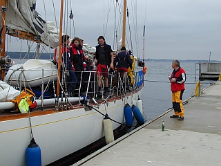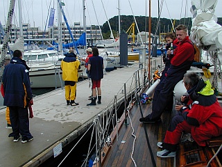 Nach einem perfekten Anleger in Laboe erst mal Klönschnack mit dem neuen Hafenmeister |